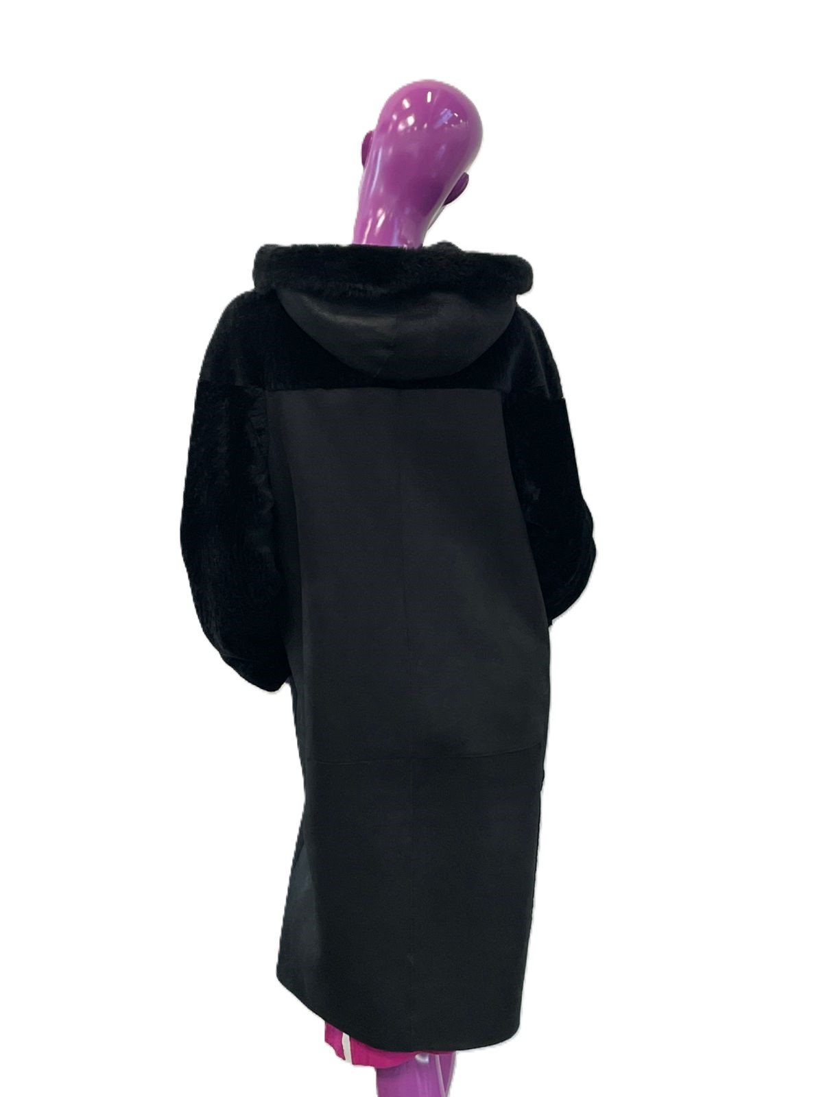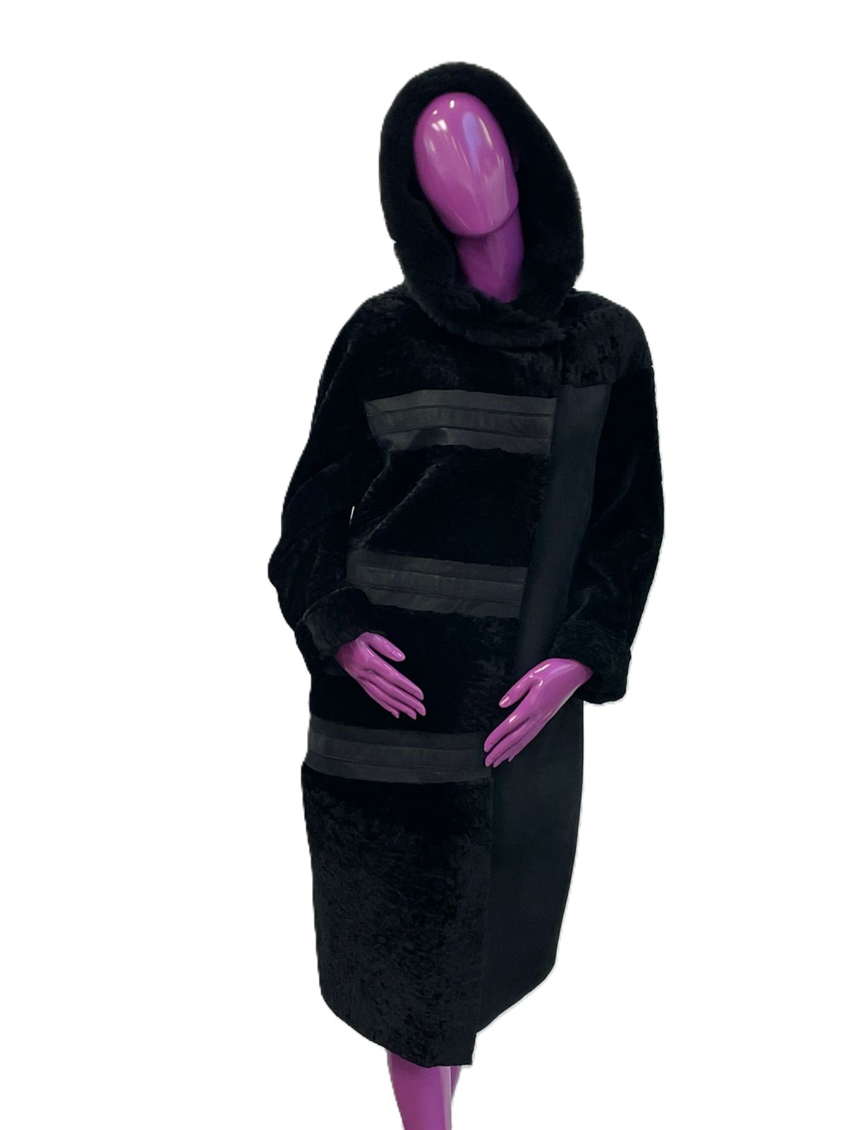 Погрузитесь в уют и стиль с нашим зимним пальто из натуральной овчины. Это пальто, выполненное в классическом черном цвете, станет вашим надежным спутником в холодные зимние дни.