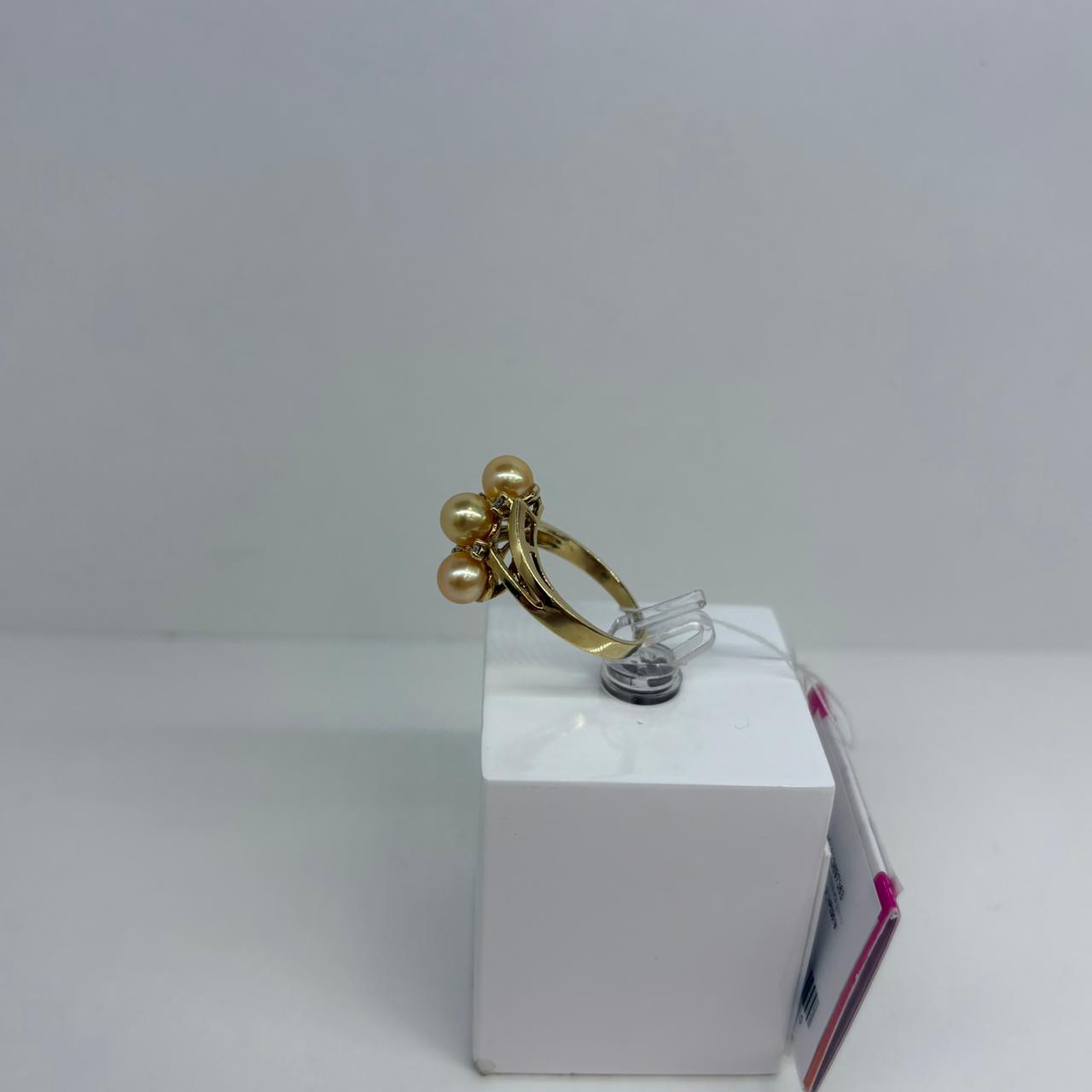 Кольцо с Бриллиантами и Жемчугом Золото 585 проба, Вес:4,44 гр, Размер:17,5