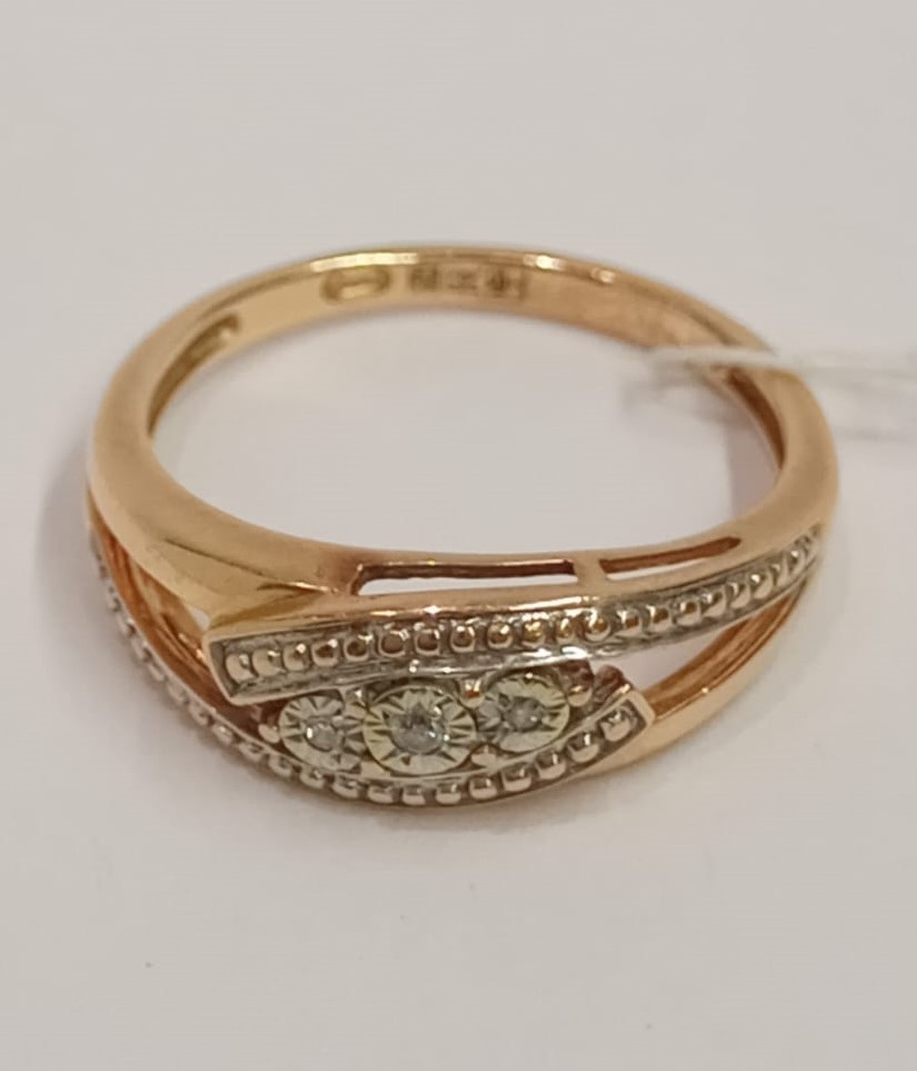 Это изысканное золотое кольцо 585 пробы весом 2,47 грамма станет прекрасным дополнением к вашему образу. Кольцо украшено тремя фианитами круглой огранки, каждый весом 0,001 грамма, что придаёт ему особый блеск и элегантность.