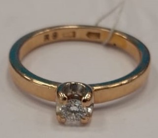 Кольцо Золото 585 с бриллиантам.1 Бриллиант кр57 5/5 0, 11