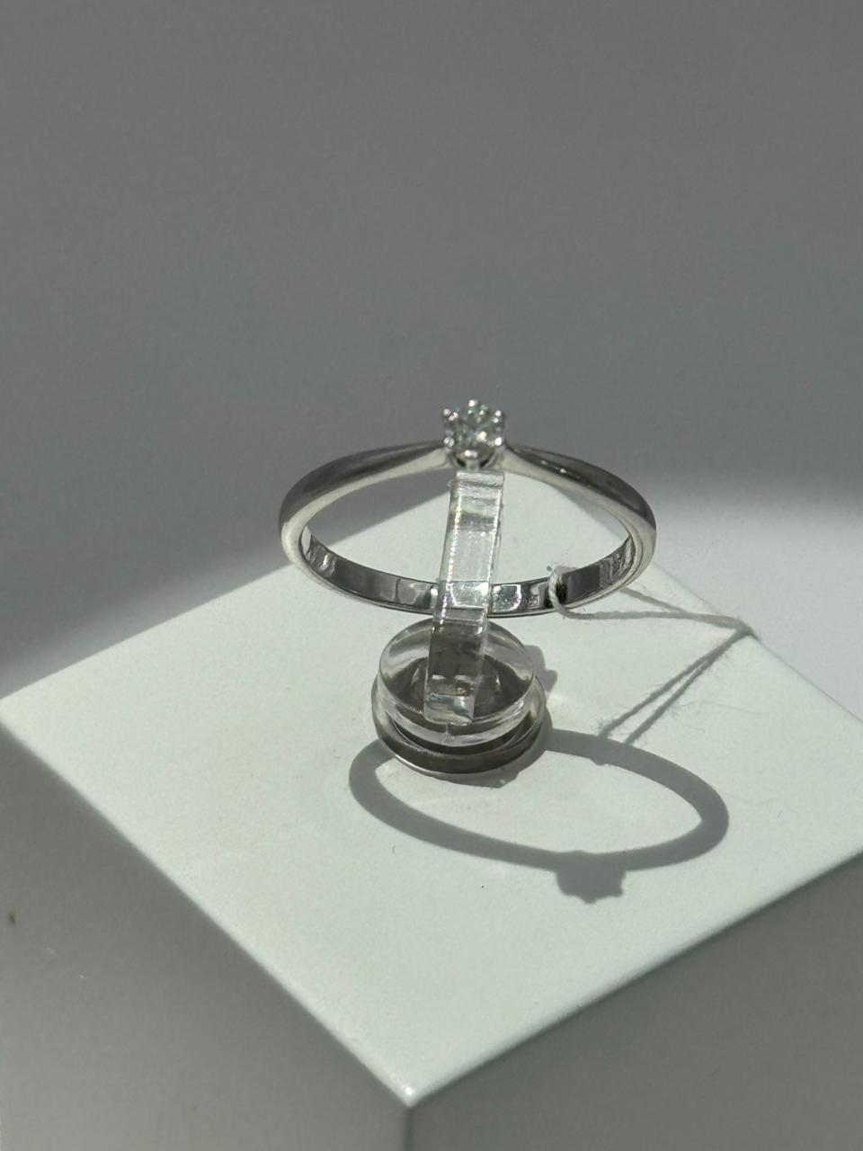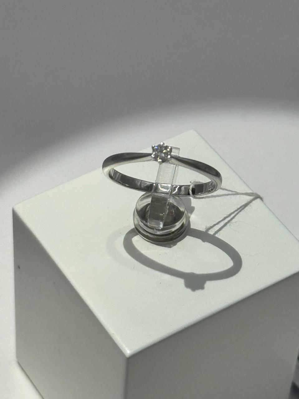 Кольцо золотое 585 пробы с бриллиантом кр57 4/5, 0,10, белое золото, вес 1,76 г., размер 17