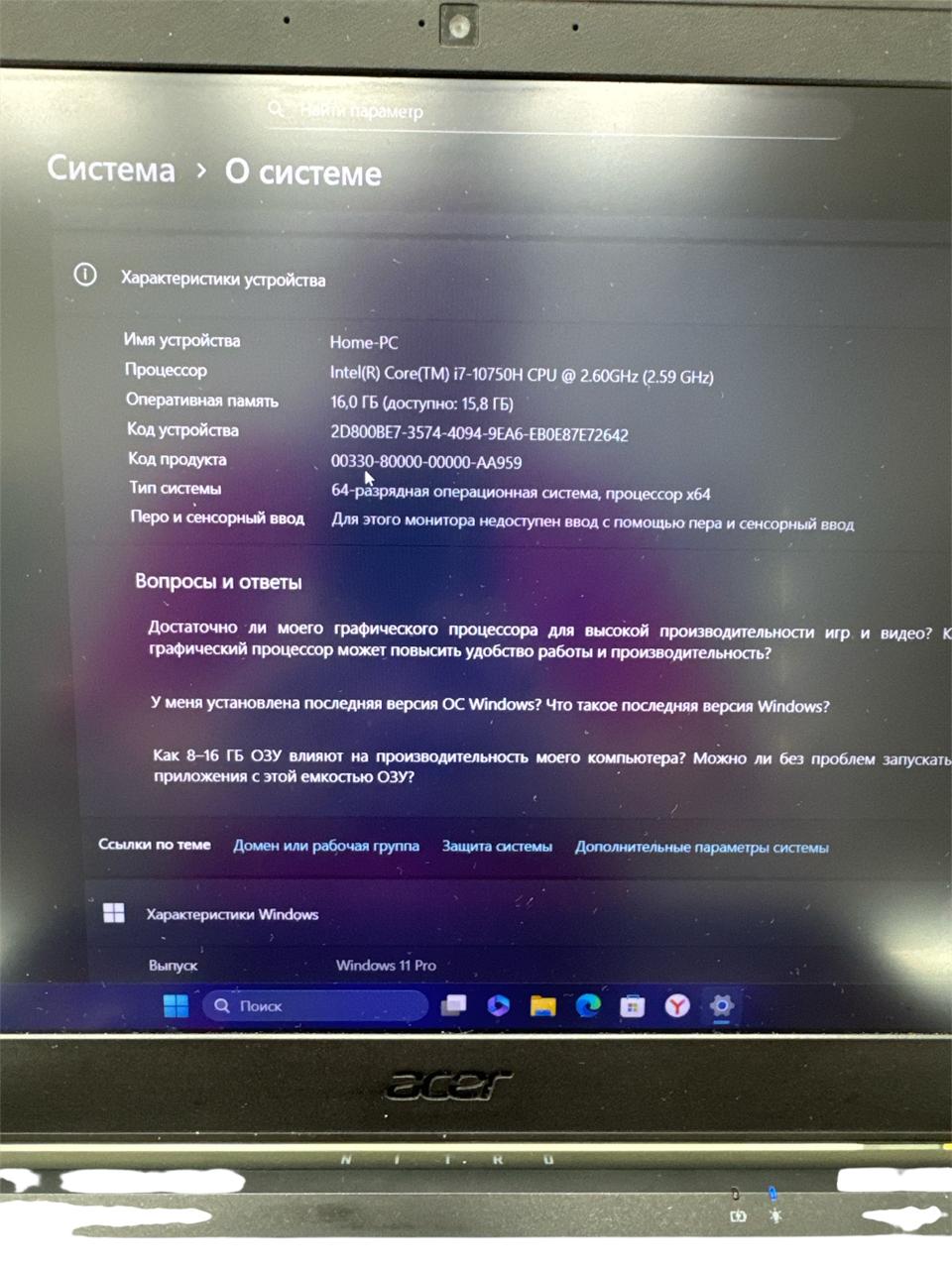 Продажа ноутбук acer nitro 7 an715-52-7733, 15.6", core i7-10750h, 16gb озу, 1tb ssd, nvidia geforce rtx 206 в Москве, Нижнем Новгороде и Казани по цене 49 709 ₽: закажите новые и б/у товары с доставкой по России в интернет-магазине РесейлМаркет.