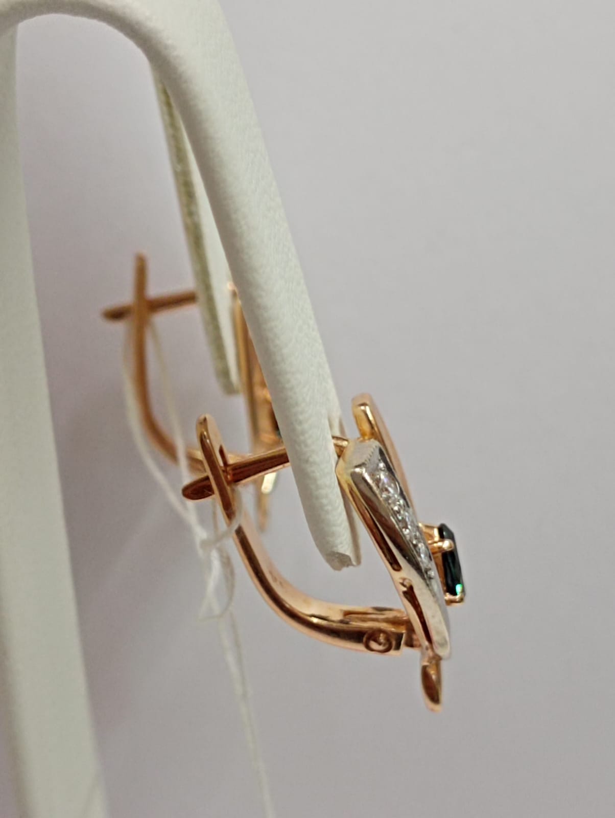 Серьги из красного золота с гидротермальным сапфиром и бриллиантом