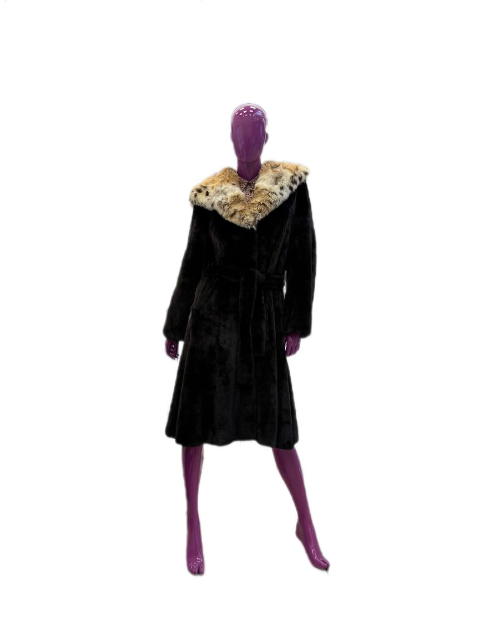 Шуба норковая с отделкой из рыси, размер 44 (M)