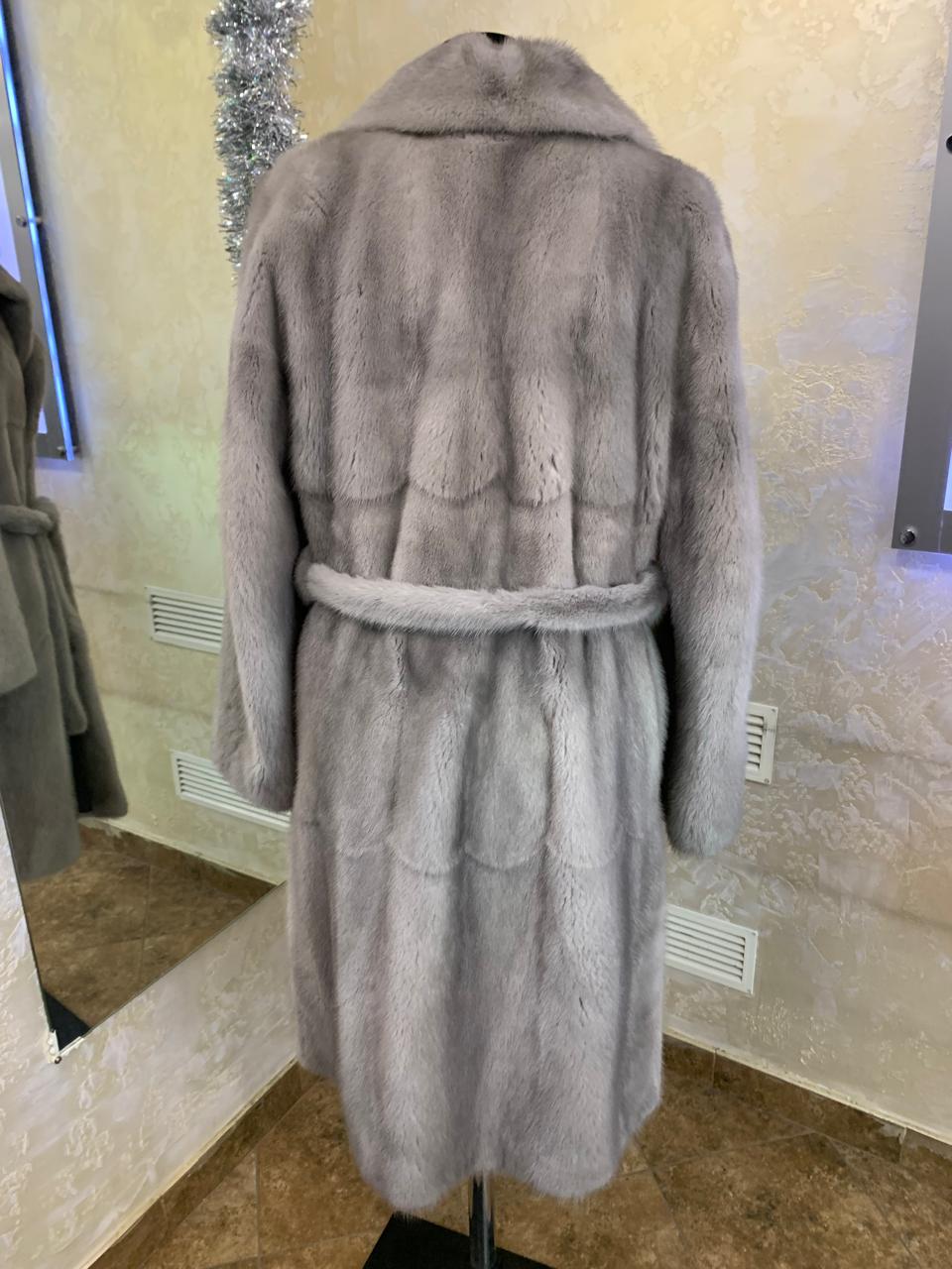 Шуба норковая Saga Furs серая, 48 размер, с ремнём